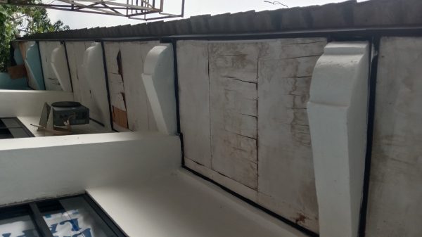 Salah satu yang paling mencolok adalah pekerjaan plafon di ruang tengah gedung baru yang belum selesai dikerjakan. Ironisnya di beberapa titik bangunan terlihat plafon luar dalam kondisi rusak, pecah serta robek.