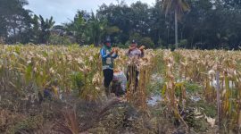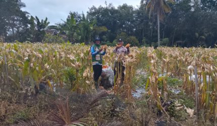 Dukung Ketahanan Pangan, Bhabinkamtibmas Dampingi Panen Jagung Bersama Petani di Tanjung Dalom