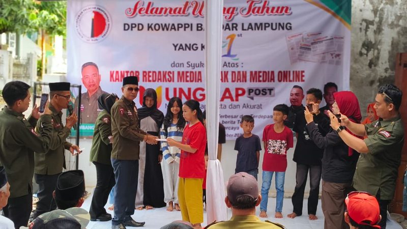 Acara ulang tahun DPD KOWAPPI Kota Bandar Lampung juga diisi dengan kegiatan bakti sosial, seperti pemberian santunan kepada 50 anak yatim piatu yang berada di sekitaran lingkungan terdekat. Selain itu, juga dilakukan syukuran atas berdirinya kantor redaksi media cetak dan online UNGKAPPOST yang juga bergabung dengan kantor DPD KOWAPPI. (Red)