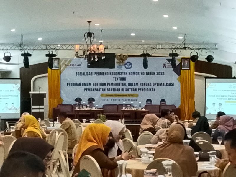 UNGKAPPOST, Palembang – Dinas Pendidikan Kota Palembang menggelar Sosialisasi Permendikbudristek Nomor 70 Tahun 2024 tentang Pedoman Umum Bantuan Pemerintah dalam rangka optimalisasi pemanfaatan bantuan satuan pendidikan. Kegiatan berlangsung di Hotel Emilia, Selasa (9/12/2025), dan diikuti ratusan perwakilan sekolah TK, SD, dan SMP, baik negeri maupun swasta.