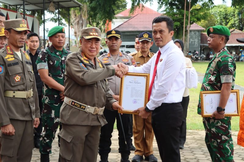 Penyerahan piagam penghargaan tersebut dilakukan pada kegiatan Apel Kesiapsiagaan Satuan Perlindungan Masyarakat (Satlinmas) yang digelar di Lapangan Merdeka Kota Agung, Selasa (13/1/2026).
