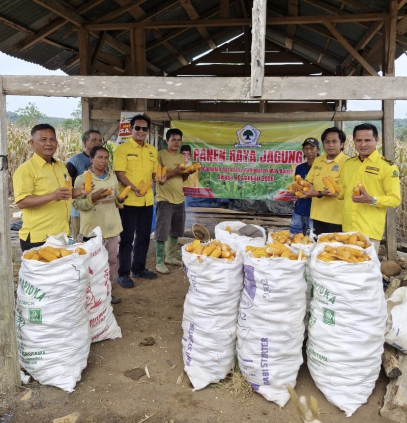 UNGKAPPOST, Way Kanan – Ketua DPD Partai Golkar Kabupaten Way Kanan, Darlian Pone, menghadiri kegiatan panen raya jagung yang dilaksanakan pada 10 Februari 2026 di Kecamatan Baradatu.