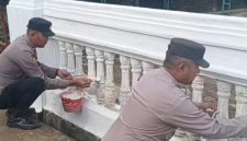 Sambut Bulan Suci Ramadhan 1447, Polsek Kasui Bantu Warga Bersihkan dan Cat Pagar di Masjid Al Iman