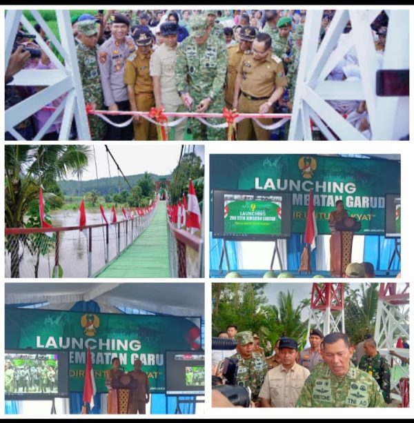 UNGKAPPOST, Pringsewu – Tentara Nasional Indonesia – Angkatan Darat (TNI-AD) melaunching 200 Jembatan Gantung Garuda tahap II di seluruh Indonesia. Launching dilakukan oleh Kepala Staf TNI-AD Jenderal TNI Maruli Simanjuntak secara terpusat dan daring, pada Senin (9/3/2026). Salah satu dari 200 jembatan yang dilaunching tersebut berada di atas aliran sungai Way Sekampung, Pekon Yogyakarta, Kecamatan Gadingrejo, Kabupaten Pringsewu, menghubungkan dengan Pekon Sukoharjo IV, Kecamatan Sukoharjo, yang diresmikan oleh Panglima Kodam (Pangdam) XXI Radin Inten Mayjen TNI Kristomei Sianturi, ditandai dengan pengguntingan pita didampingi Bupati Pringsewu Riyanto Pamungkas.