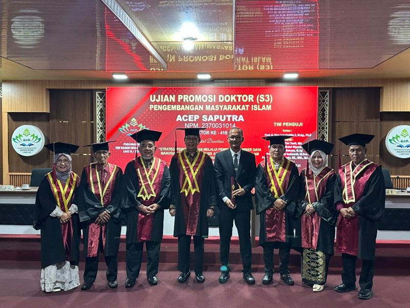 Gelar prestisius tersebut diraih setelah Ipda Acep dinyatakan lulus dalam Sidang Promosi Doktor Program Studi S3 yang digelar di Auditorium Pascasarjana Universitas Islam Negeri Raden Intan Lampung pada Senin (8/4/2026). Ia lulus dengan predikat Summa Cum Laude, predikat akademik tertinggi, dengan Indeks Prestasi Kumulatif (IPK) 3,87.