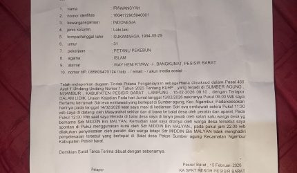 Sekretaris DPC ASWIN Pesisir Barat Kecam Aksi Main Hakim Sendiri