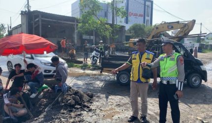 Perbaikan Irigasi Dikebut, Polisi Turun Langsung Atur Arus Lalin